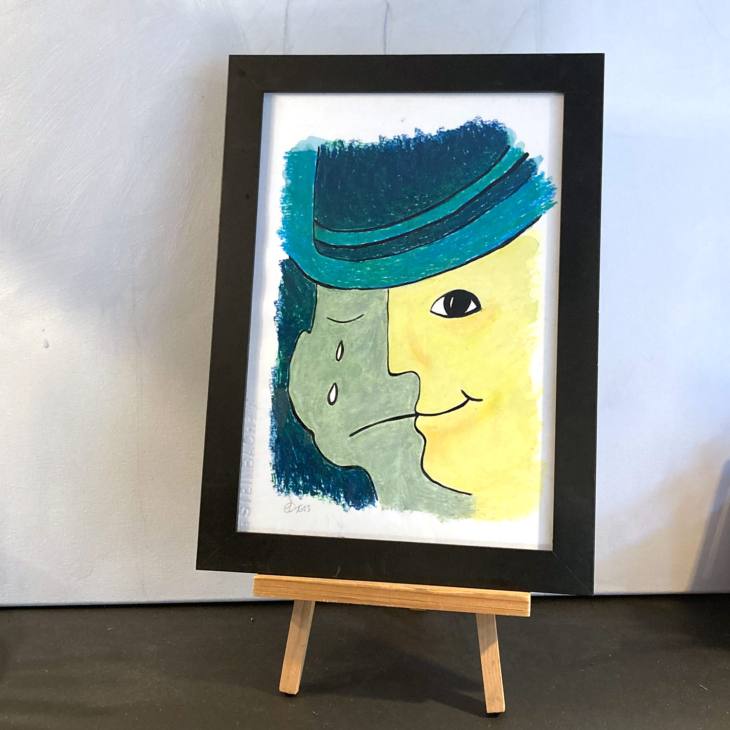 Jean de la Lune est le trentre-deuxième Illumine. Il s’agit de l’une des 80 illustrations originales qui ont permis de créer l’ « Illu-langage » ILLUMINE, vendu sur cette même boutique. Techniques mixtes : pastels gras et encre de Chine.