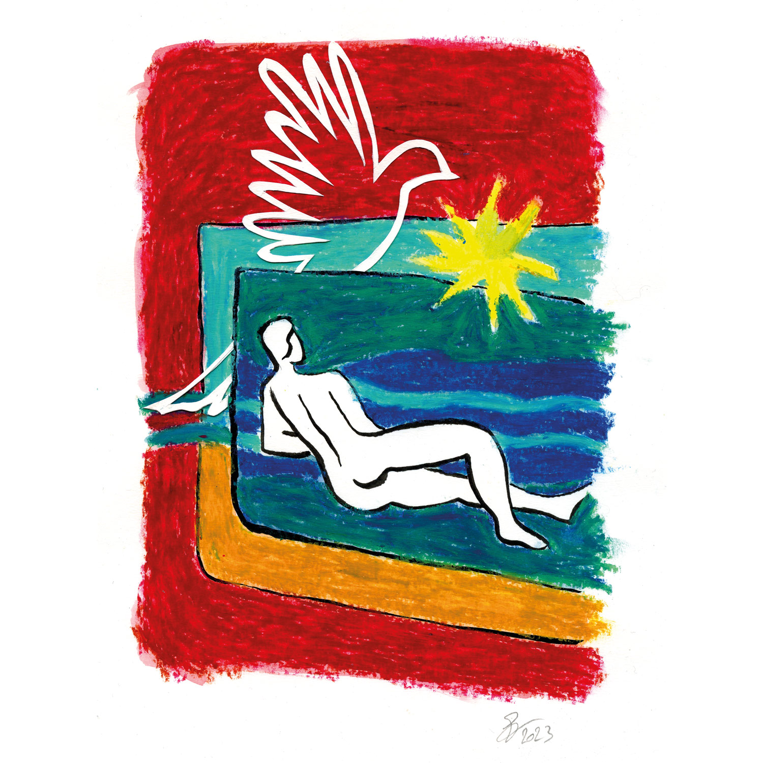 L’Odalisque est le dixième Illumine. Il s’agit de l’une des 80 illustrations originales qui ont permis de créer l’ « Illu-langage » ILLUMINE, vendu sur cette même boutique. Techniques mixtes : pastels gras, encre de Chine, papier découpé.
